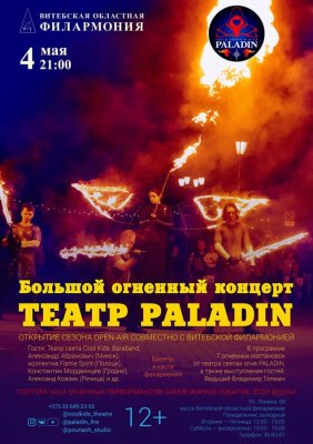 В Витебске 4 мая 2025 года, в 21:00, во внутреннем дворике филармонии состоится грандиозный огненный концерт, организованный театром «PALADIN», рассчитанный на зрителей от 12 лет и старше. Это будет в прямом и переносном смысле жаркое событие, которое запомнится надолго! Обо всех подробностях этого мероприятия читайте на портале «Куда Пойти».