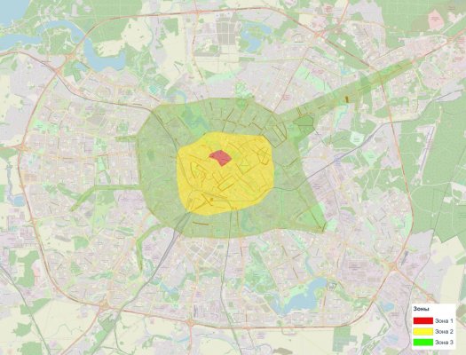Столицу визуально разбили на три кольца, каждое из которых имеет свою тарифную логику: